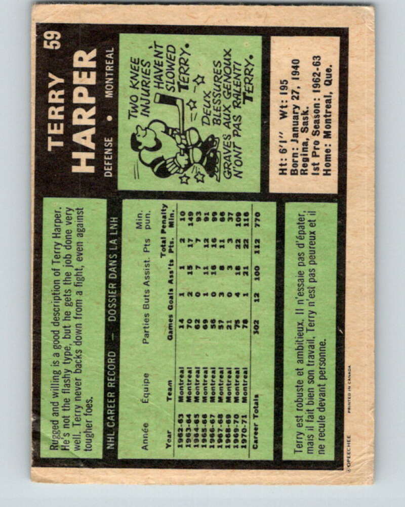 1971-72 O-Pee-Chee #59 Terry Harper Montreal Canadiens V9136