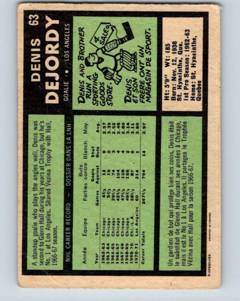 1971-72 O-Pee-Chee #63 Denis DeJordy Los Angeles Kings V9143