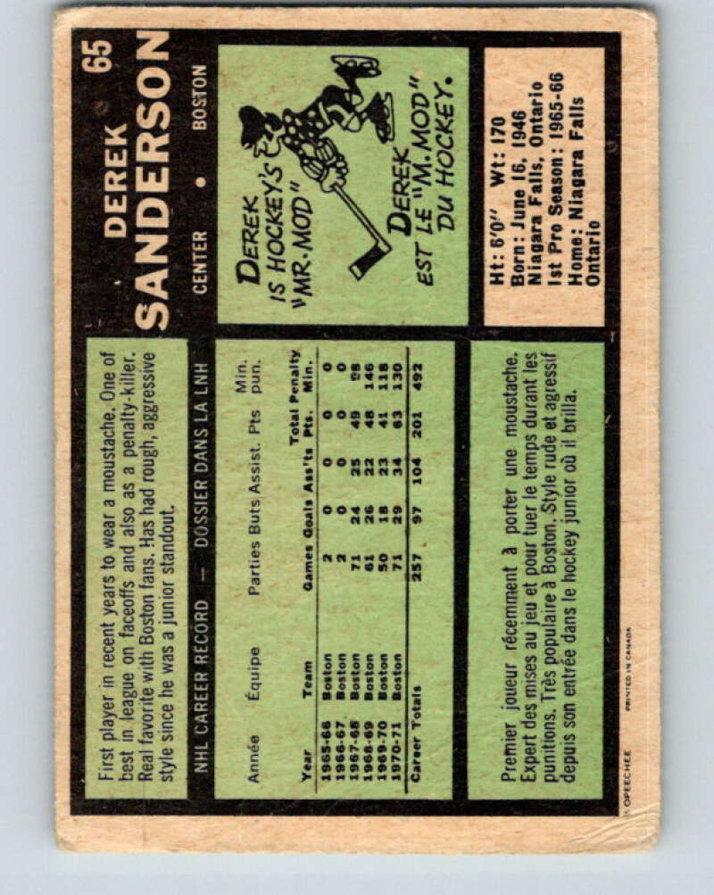 1971-72 O-Pee-Chee #65 Derek Sanderson Boston Bruins V9152