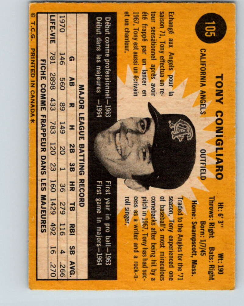 1971 O-Pee-Chee MLB #105 Tony Conigliaro� California Angels� V10840