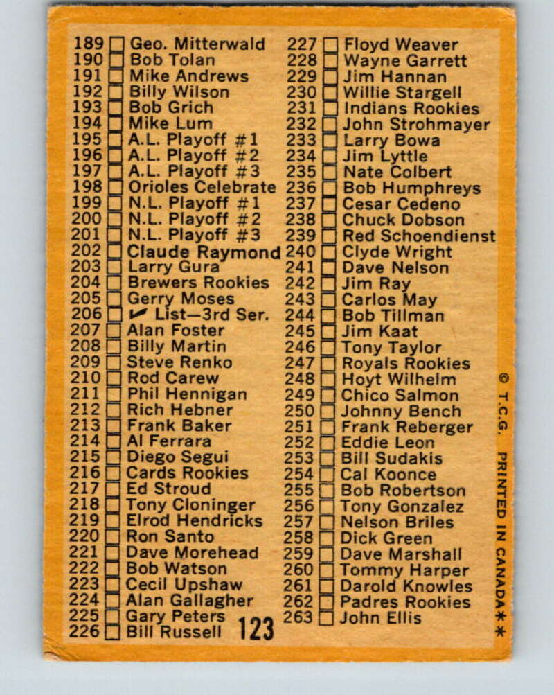 1971 O-Pee-Chee MLB #123 Checklist 133-263 � V10868