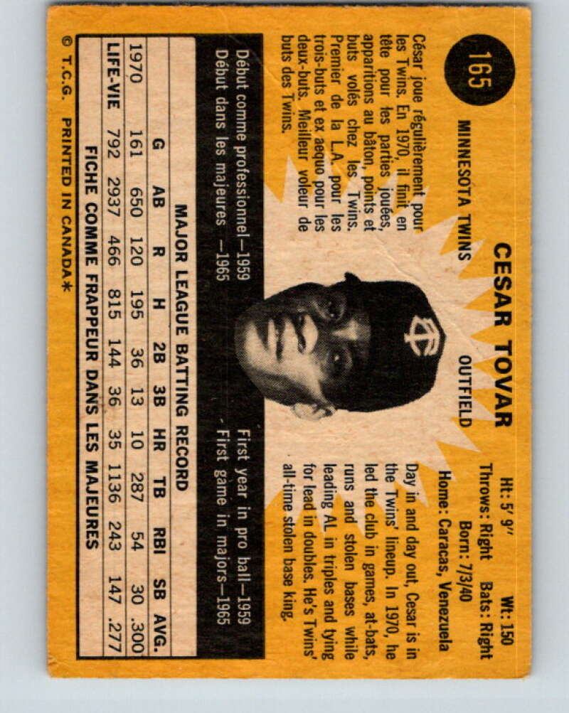 1971 O-Pee-Chee MLB #165 Cesar Tovar� Minnesota Twins� V10950