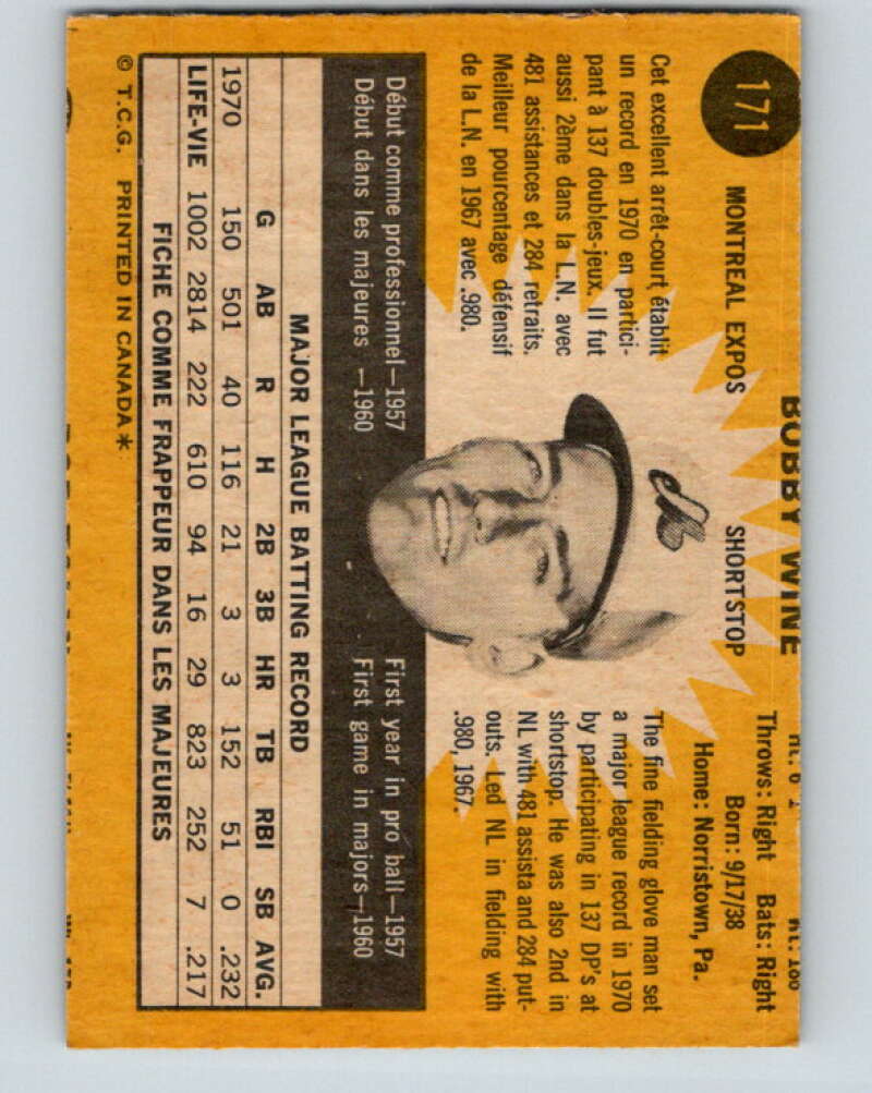 1971 O-Pee-Chee MLB #171 Bobby Wine� Montreal Expos� V10964