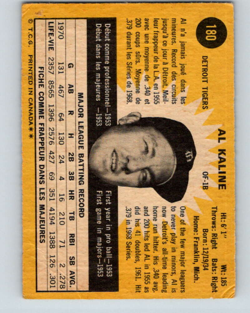 1971 O-Pee-Chee MLB #180 Al Kaline� Detroit Tigers� V10978
