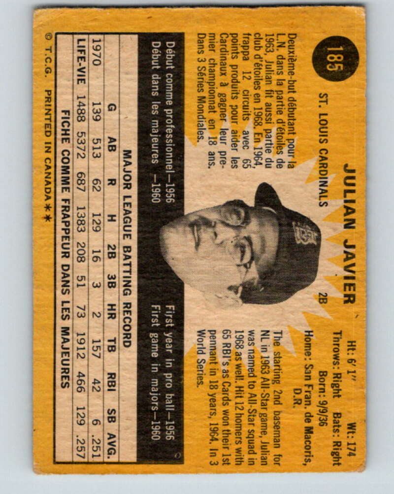1971 O-Pee-Chee MLB #185 Julian Javier� St. Louis Cardinals� V10989