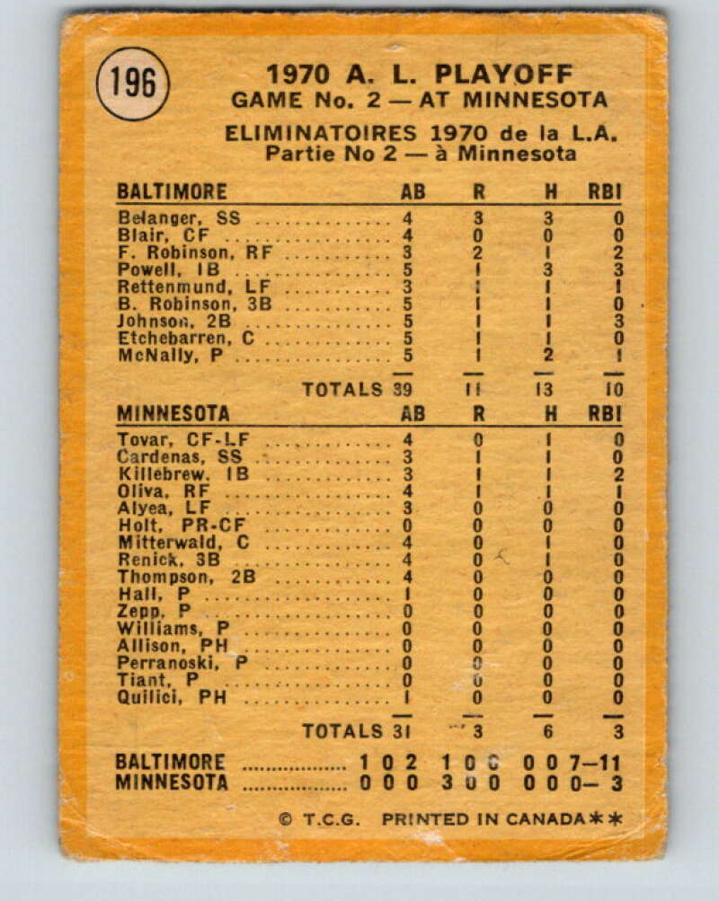 1971 O-Pee-Chee MLB #196 AL Playoffs Game 2� V11013