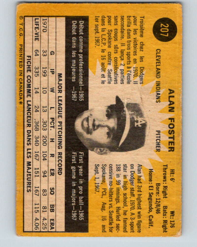 1971 O-Pee-Chee MLB #207 Alan Foster� Cleveland Indians� V11026