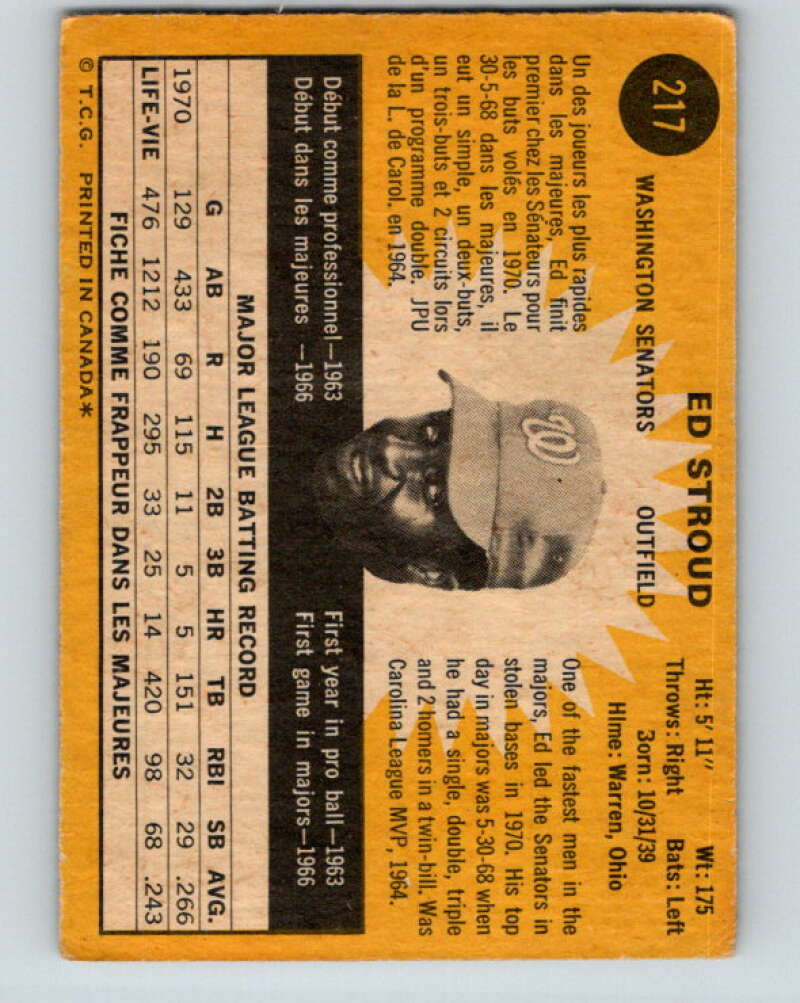 1971 O-Pee-Chee MLB #217 Ed Stroud� Washington Senators� V11047