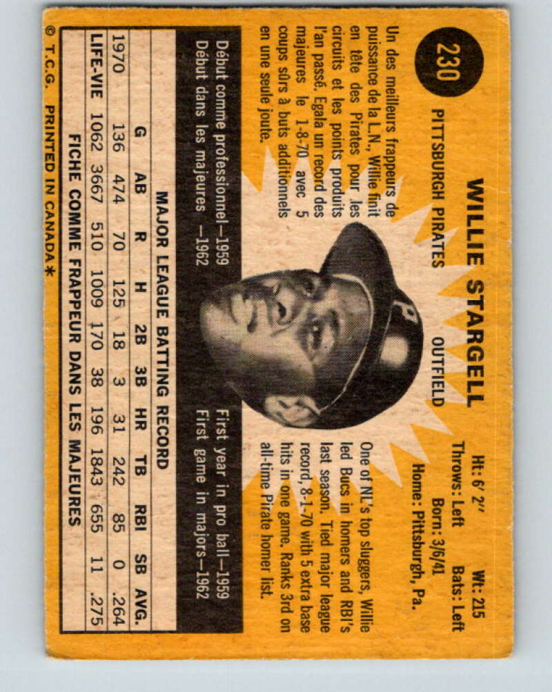 1971 O-Pee-Chee MLB #230 Willie Stargell� Pittsburgh Pirates� V11062