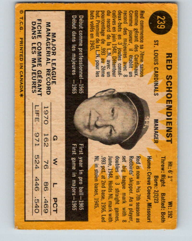 1971 O-Pee-Chee MLB #239 Red Schoendienst� St. Louis Cardinals� V11080
