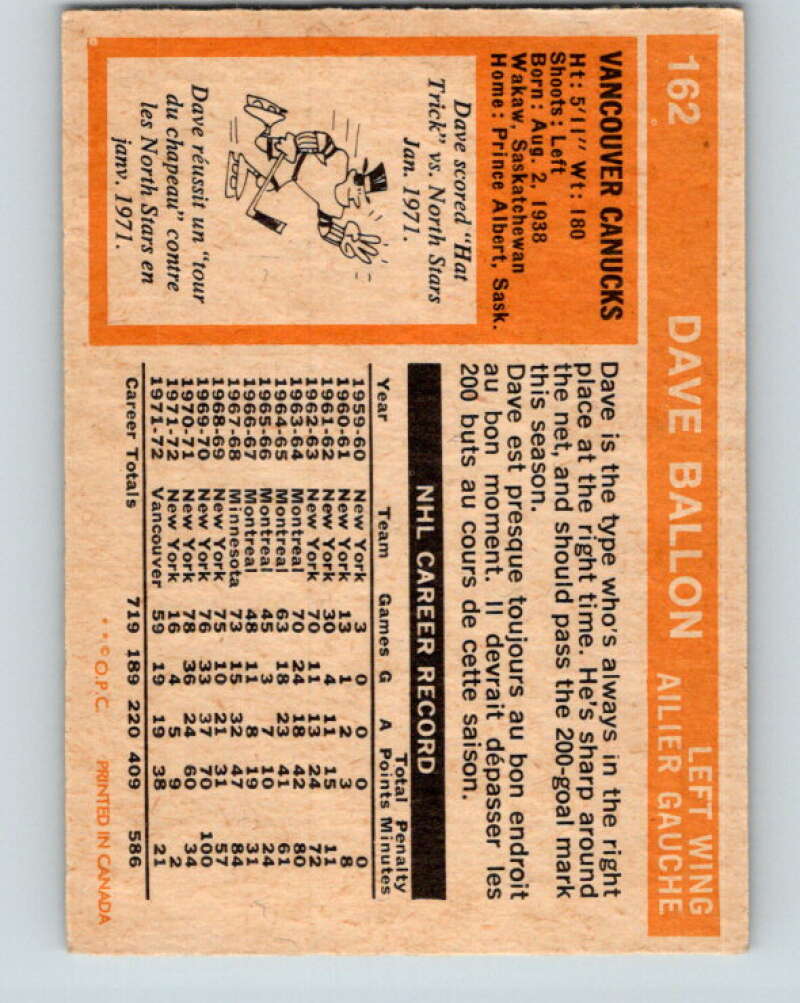 1972-73 O-Pee-Chee #162 Dave Balon UER Vancouver Canucks V3957