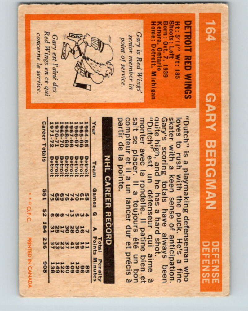 1972-73 O-Pee-Chee #164 Gary Bergman Detroit Red Wings V3964