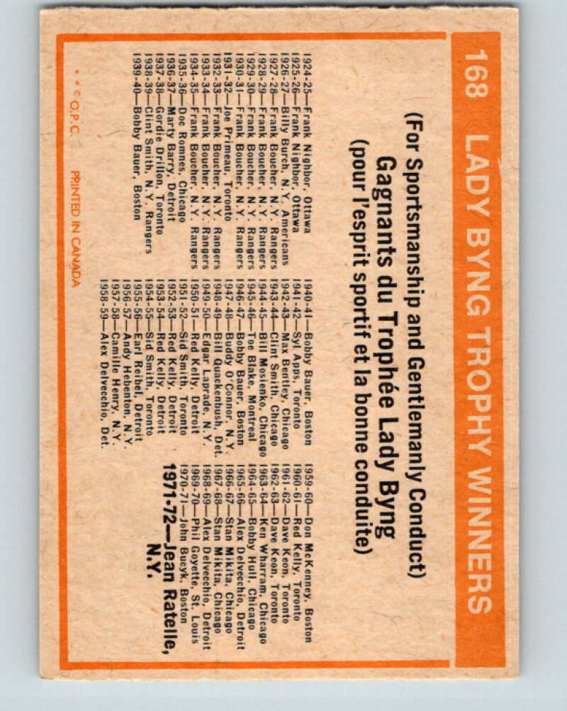 1972-73 O-Pee-Chee #168 Lady Byng Trophy V3989