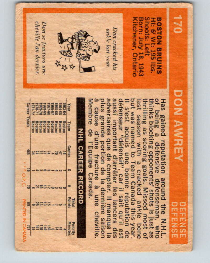 1972-73 O-Pee-Chee #170 Don Awrey Boston Bruins V3996