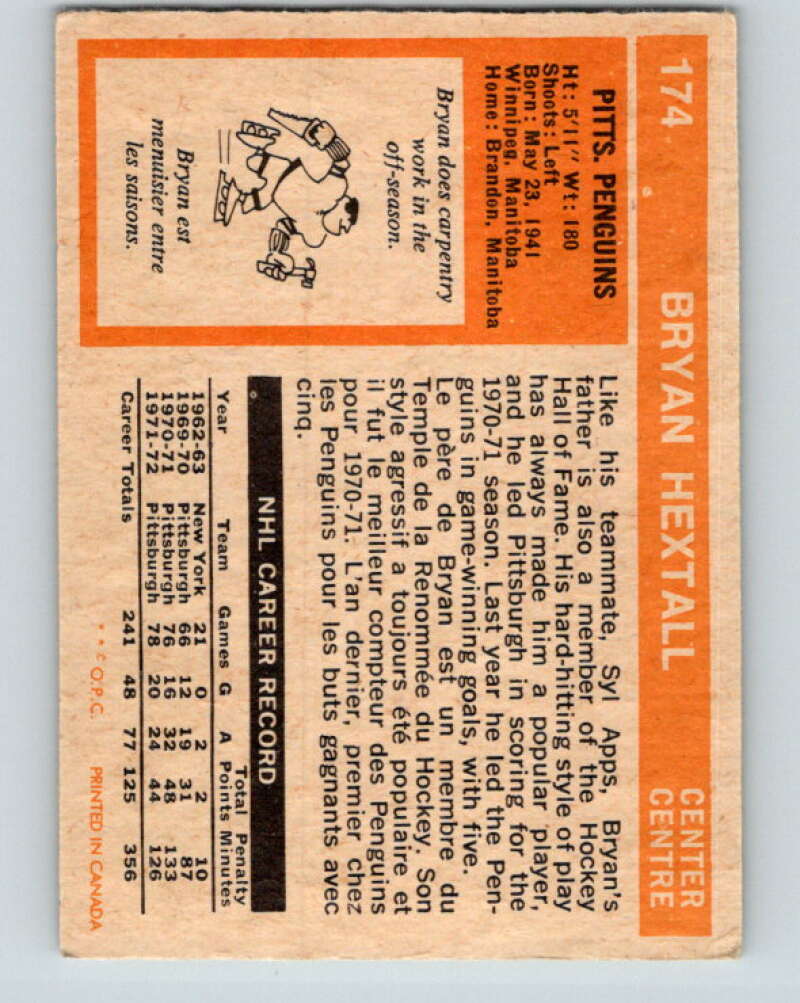1972-73 O-Pee-Chee #174 Bryan Hextall Pittsburgh Penguins V4012