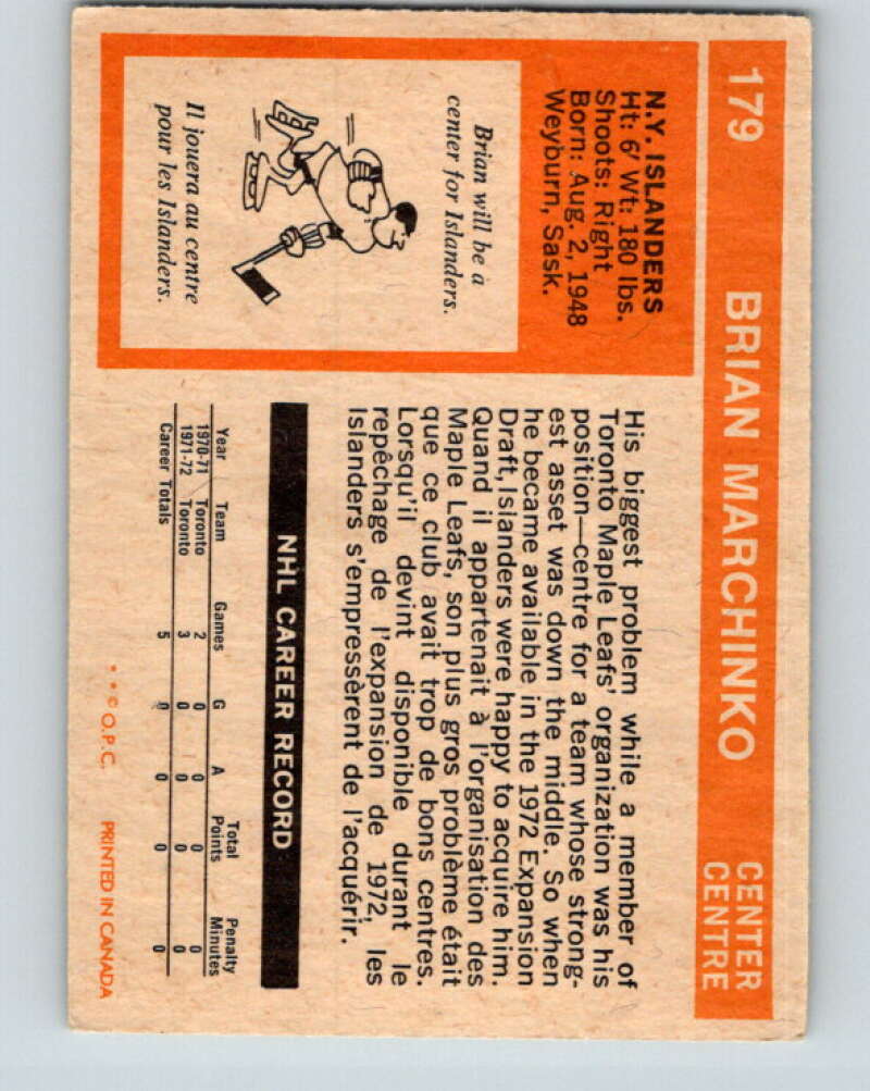 1972-73 O-Pee-Chee #179 Brian Marchinko RC Rookie New York Islanders V4024