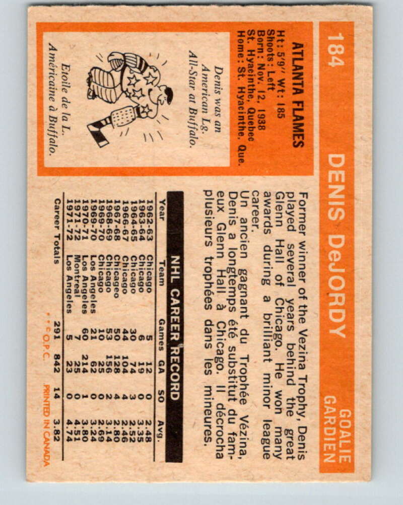 1972-73 O-Pee-Chee #184 Denis DeJordy UER Detroit Red Wings V4051