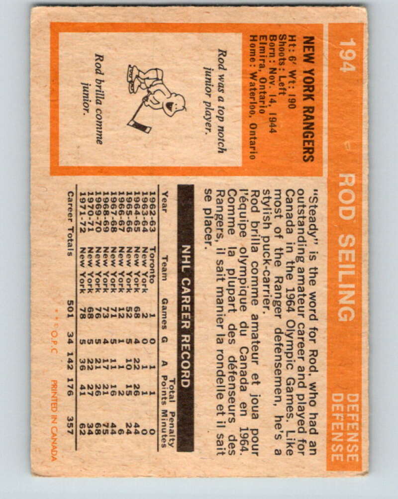 1972-73 O-Pee-Chee #194 Rod Seiling New York Rangers V4092