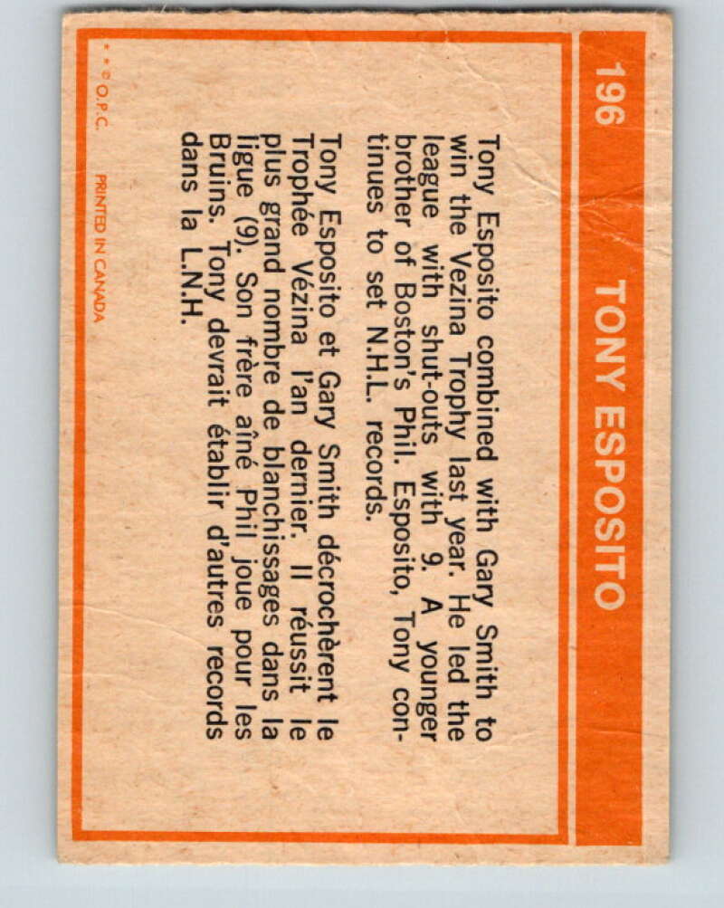 1972-73 O-Pee-Chee #196 Tony Esposito Chicago Blackhawks V4100