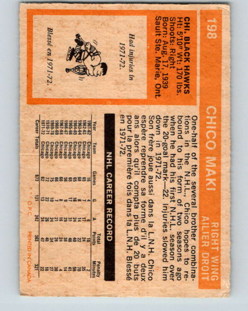 1972-73 O-Pee-Chee #198 Chico Maki Chicago Blackhawks V4104