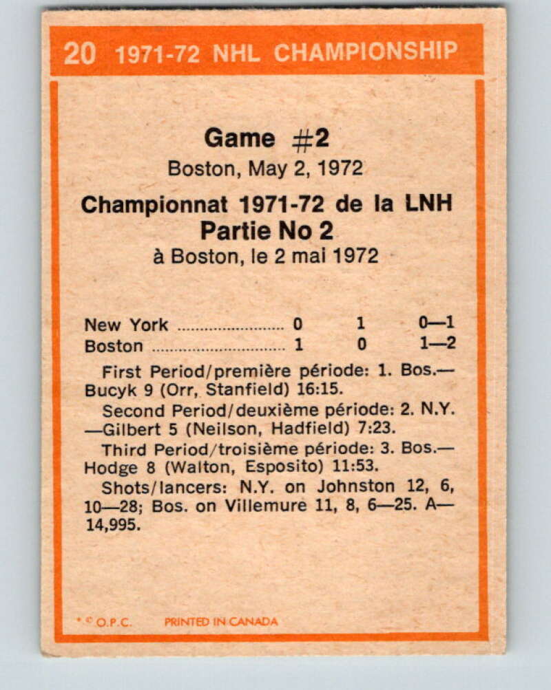 1972-73 O-Pee-Chee #20 Playoff Game 2 Boston Bruins/New York Rangers V3253