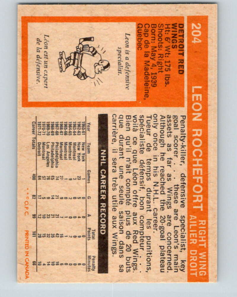 1972-73 O-Pee-Chee #204 Leon Rochefort Detroit Red Wings V4127