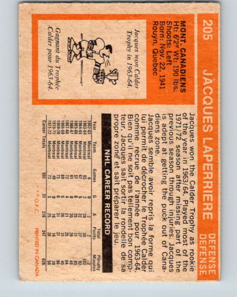 1972-73 O-Pee-Chee #205 Jacques Laperriere Montreal Canadiens V4134