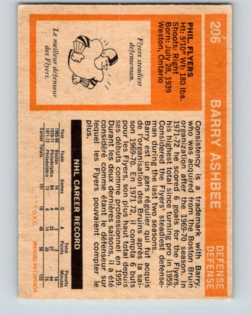 1972-73 O-Pee-Chee #206 Barry Ashbee Philadelphia Flyers V4147