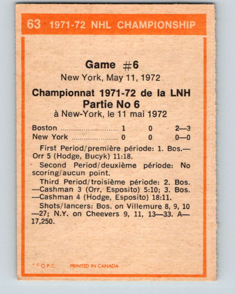 1972-73 O-Pee-Chee #63 Playoff Games 6 Boston Bruins/New York Rangers V3528