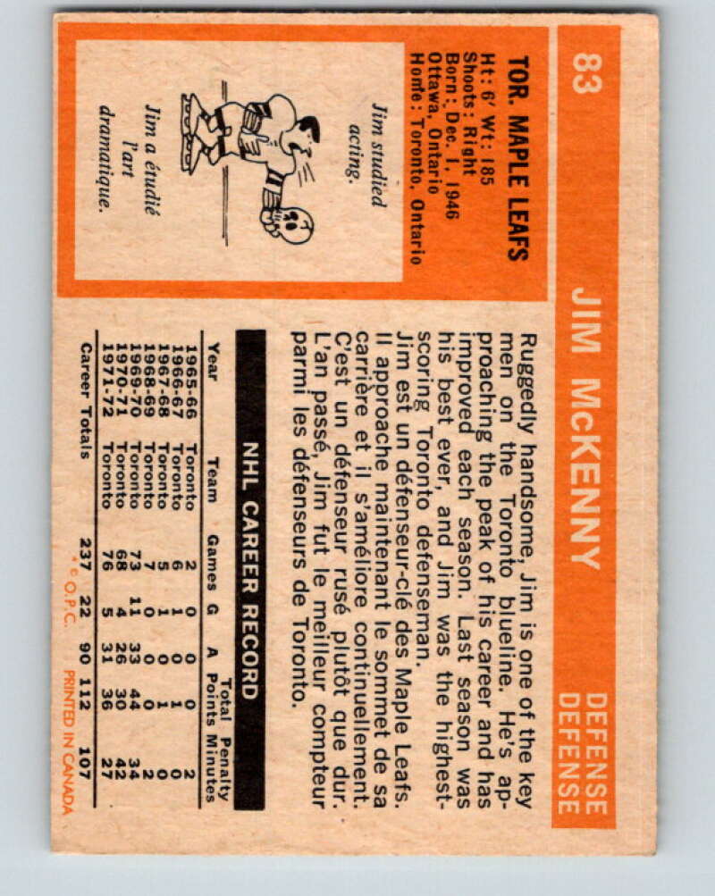 1972-73 O-Pee-Chee #83 Jim McKenny Toronto Maple Leafs V3649