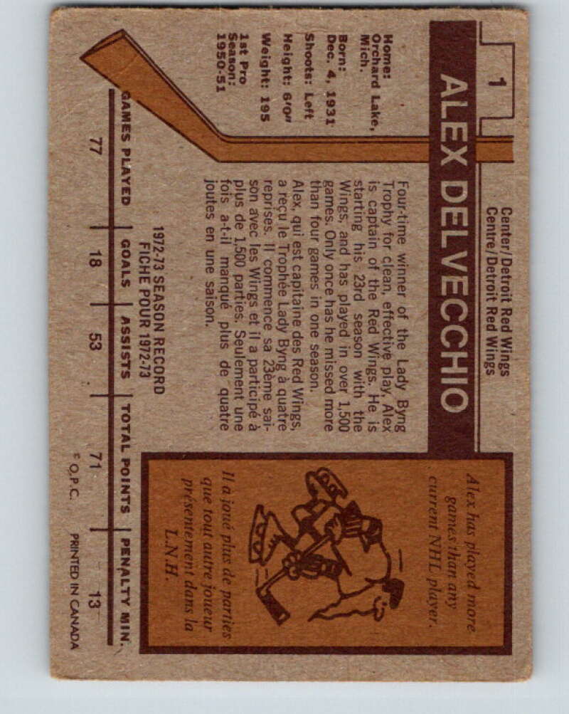 1973-74 O-Pee-Chee #1 Alex Delvecchio Detroit Red Wings V7922