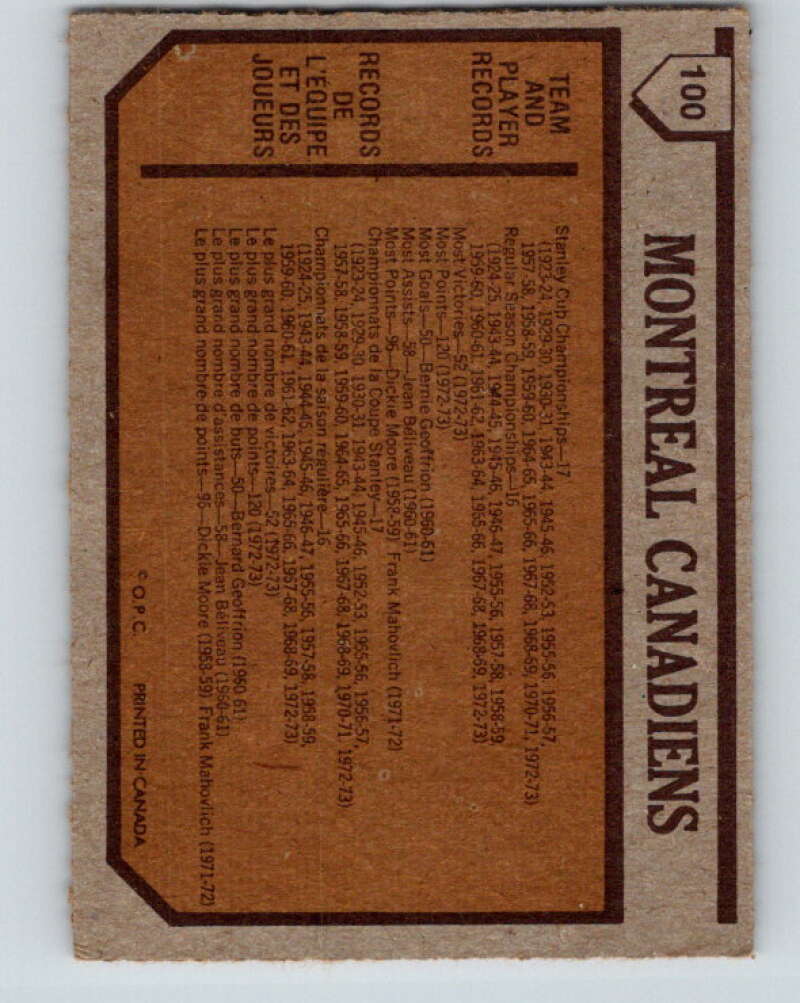 1973-74 O-Pee-Chee #100 Canadiens Team Montreal Canadiens V8326