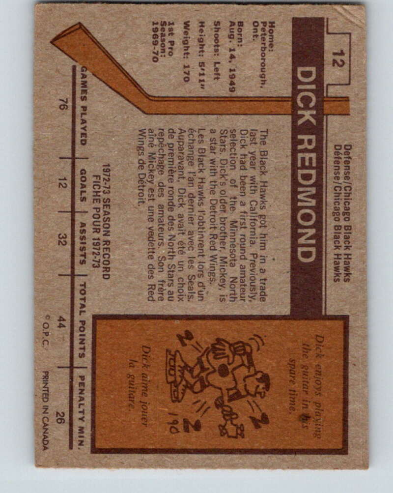 1973-74 O-Pee-Chee #12 Dick Redmond Chicago Blackhawks V7962
