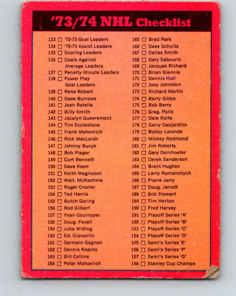 1973-74 O-Pee-Chee #129 Checklist UER V8413