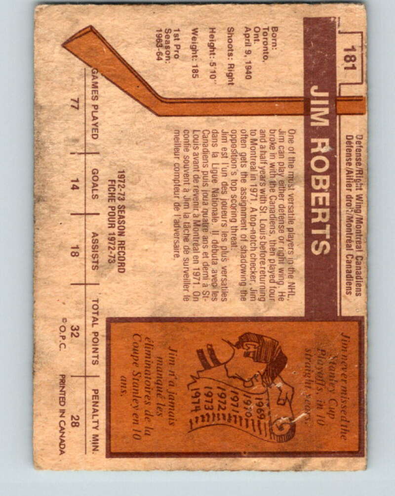 1973-74 O-Pee-Chee #181 Jim Roberts Montreal Canadiens V8505