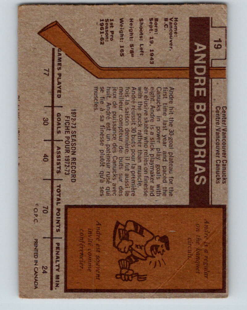 1973-74 O-Pee-Chee #19 Andre Boudrias Vancouver Canucks V7994