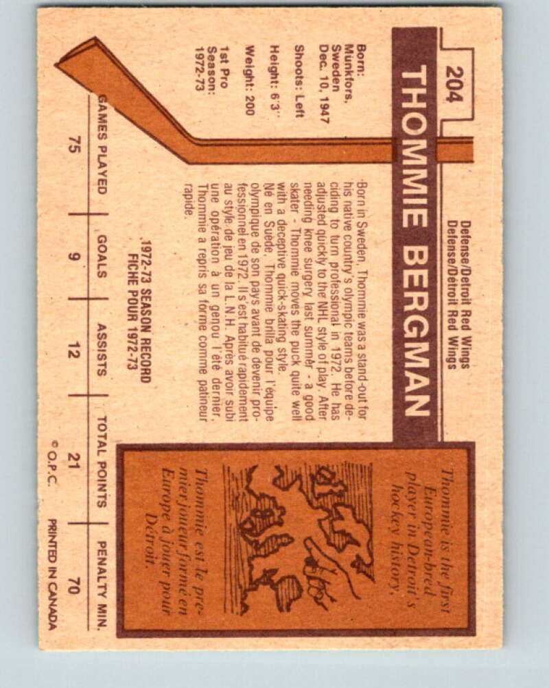 1973-74 O-Pee-Chee #204 Thommie Bergman RC Rookie Detroit V8549