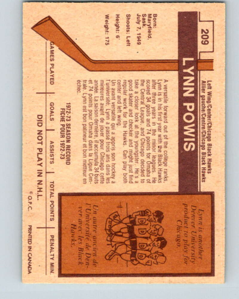 1973-74 O-Pee-Chee #209 Lynn Powis RC Rookie Chicago Blackhawks V8559