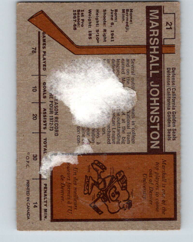 1973-74 O-Pee-Chee #21 Marshall Johnston California Golden Seals V8001