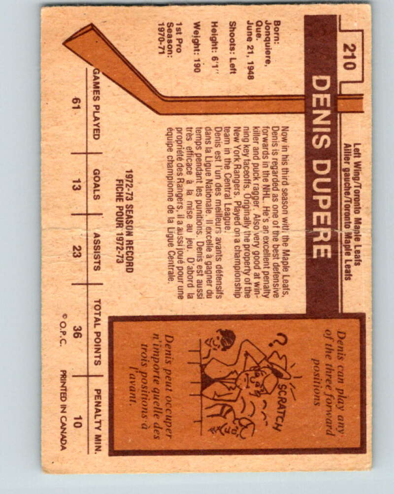 1973-74 O-Pee-Chee #210 Denis Dupere Toronto Maple Leafs V8566