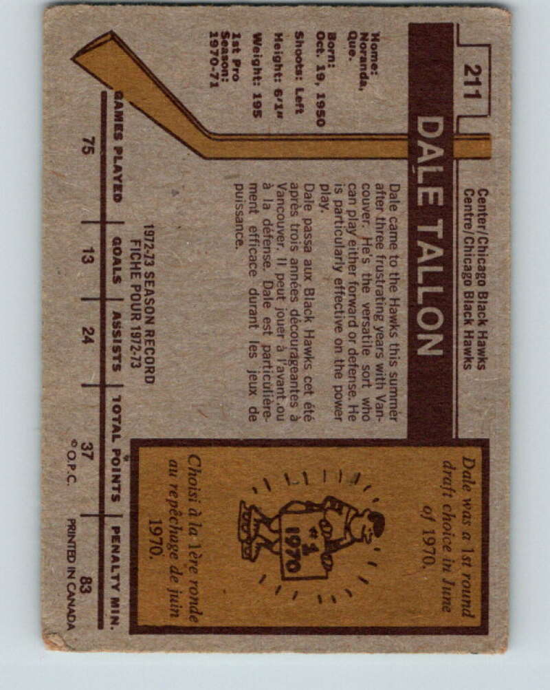 1973-74 O-Pee-Chee #211 Dale Tallon Chicago Blackhawks V8568