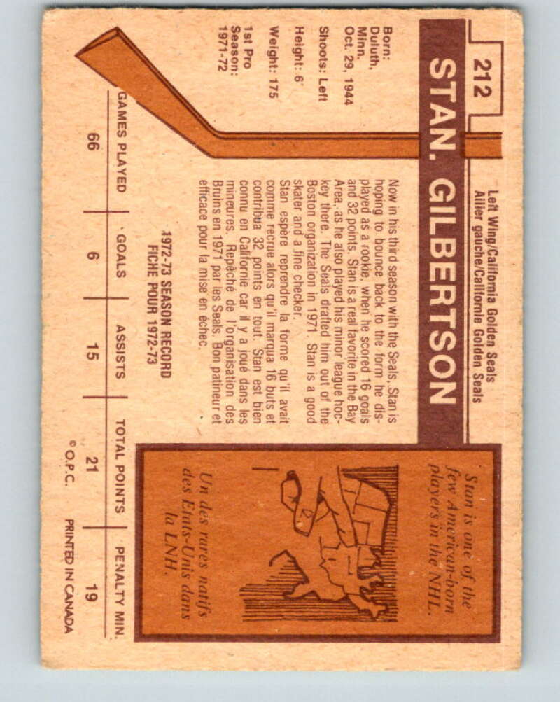 1973-74 O-Pee-Chee #212 Stan Gilbertson California Golden Seals V8571