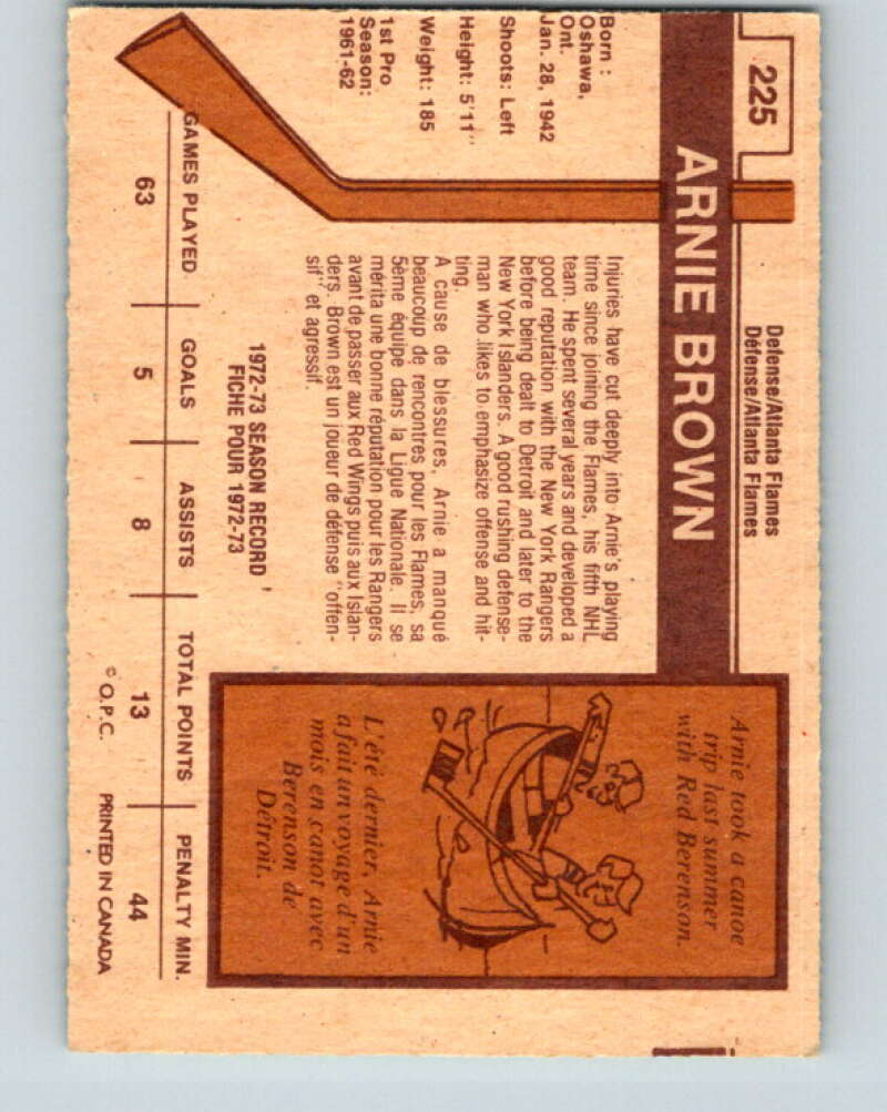 1973-74 O-Pee-Chee #225 Arnie Brown Atlanta Flames V8583