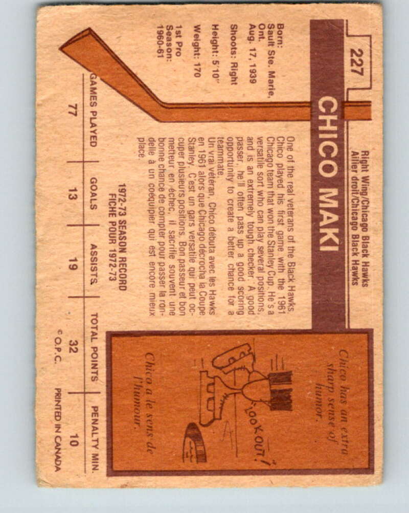 1973-74 O-Pee-Chee #227 Chico Maki Chicago Blackhawks V8589