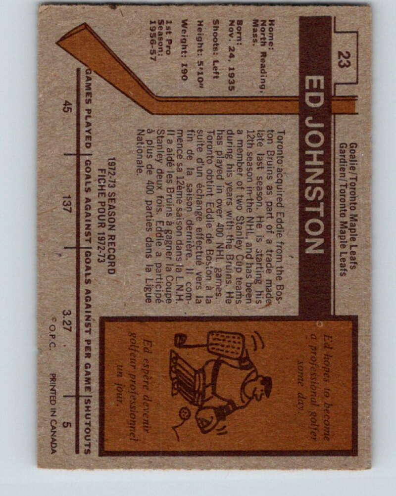 1973-74 O-Pee-Chee #23 Ed Johnston Toronto Maple Leafs V8010