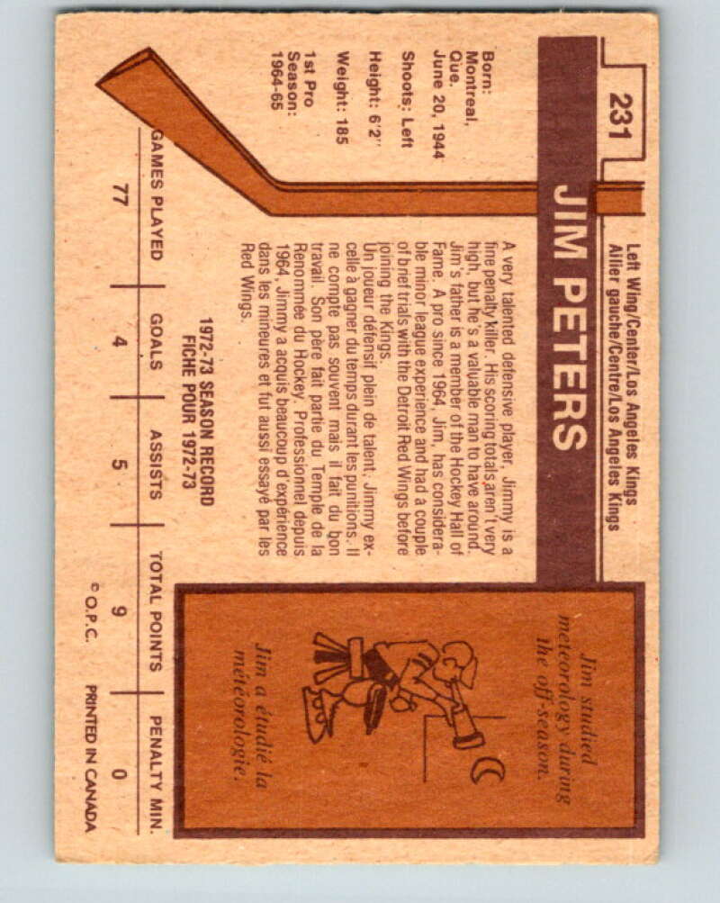 1973-74 O-Pee-Chee #231 Jim Peters Los Angeles Kings V8597