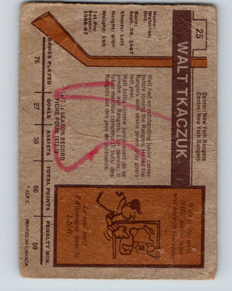 1973-74 O-Pee-Chee #25 Walt Tkaczuk New York Rangers V8021