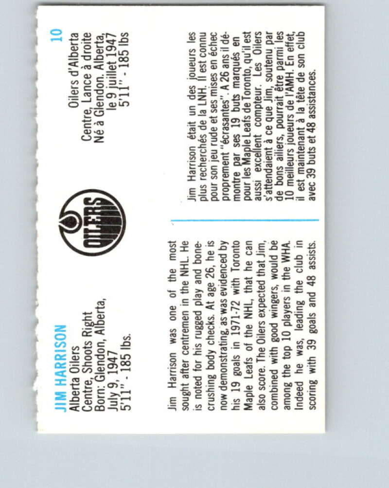 1973-74 Quaker Oats WHA #10 Jim Harrison Alberta Oilers V8908