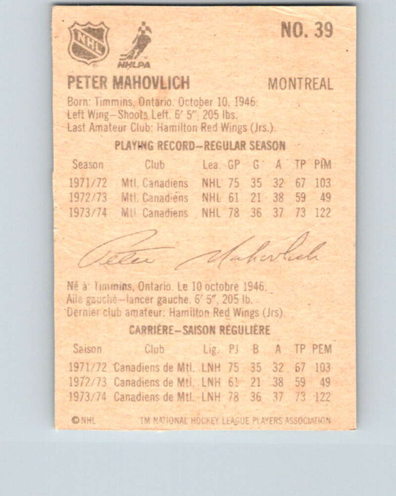 1974-75 Lipton Soup #39 Pete Mahovlich Montreal Canadiens V32265