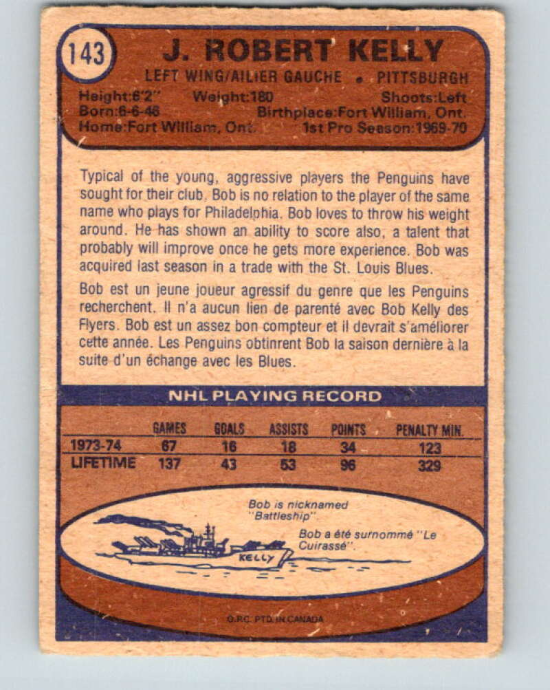 1974-75 O-Pee-Chee #143 J. Bob Kelly RC Rookie Pittsburgh Penguins V4555